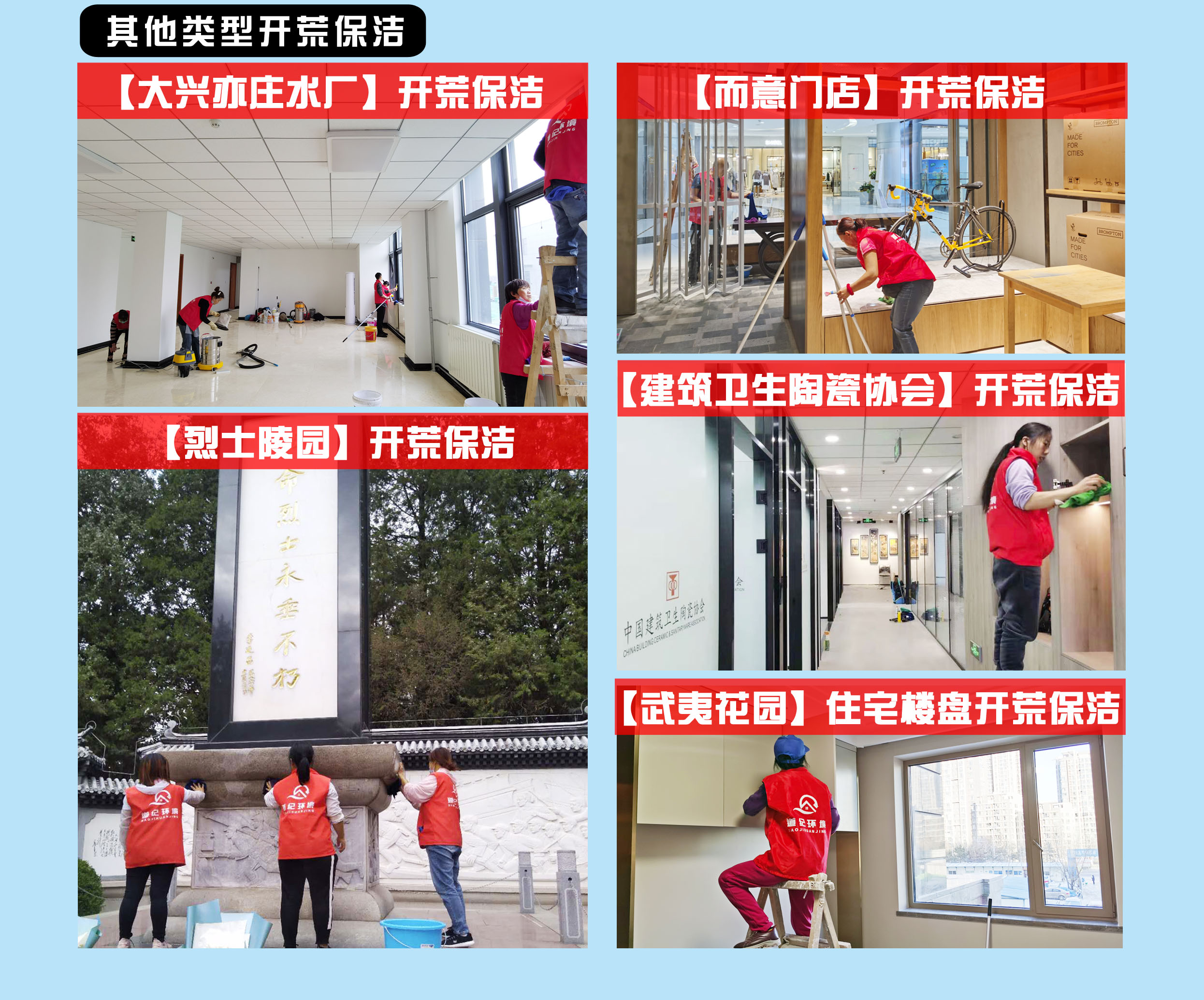 道紀環境提供石材護理、外墻清洗、甲醛治理、消毒殺菌、管道清洗、保養服務、保潔服務等全品類保潔保養服務,提供大型活動清潔保障工作。